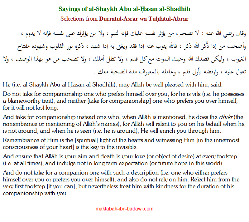 Reflections of al-Shadhili