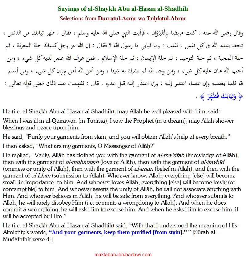 Selections from the book entitled Durratul-Asrar wa Tuhfatul-Abrar