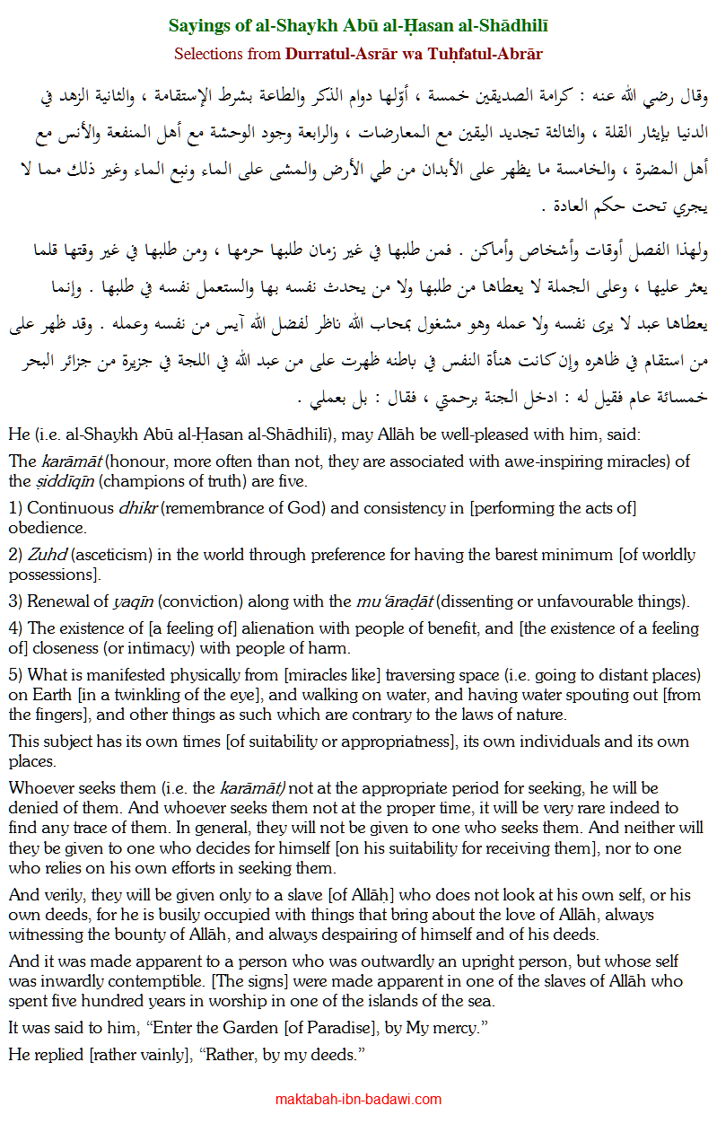 Selections from the book entitled Durrah al-Asrar wa Tuhfah al-Abrar