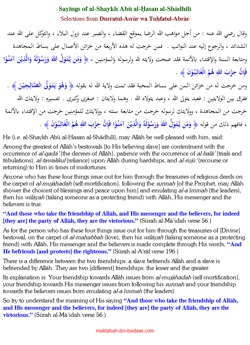 Selections from the book entitled Durratul-Asrar wa Tuhfatul-Abrar